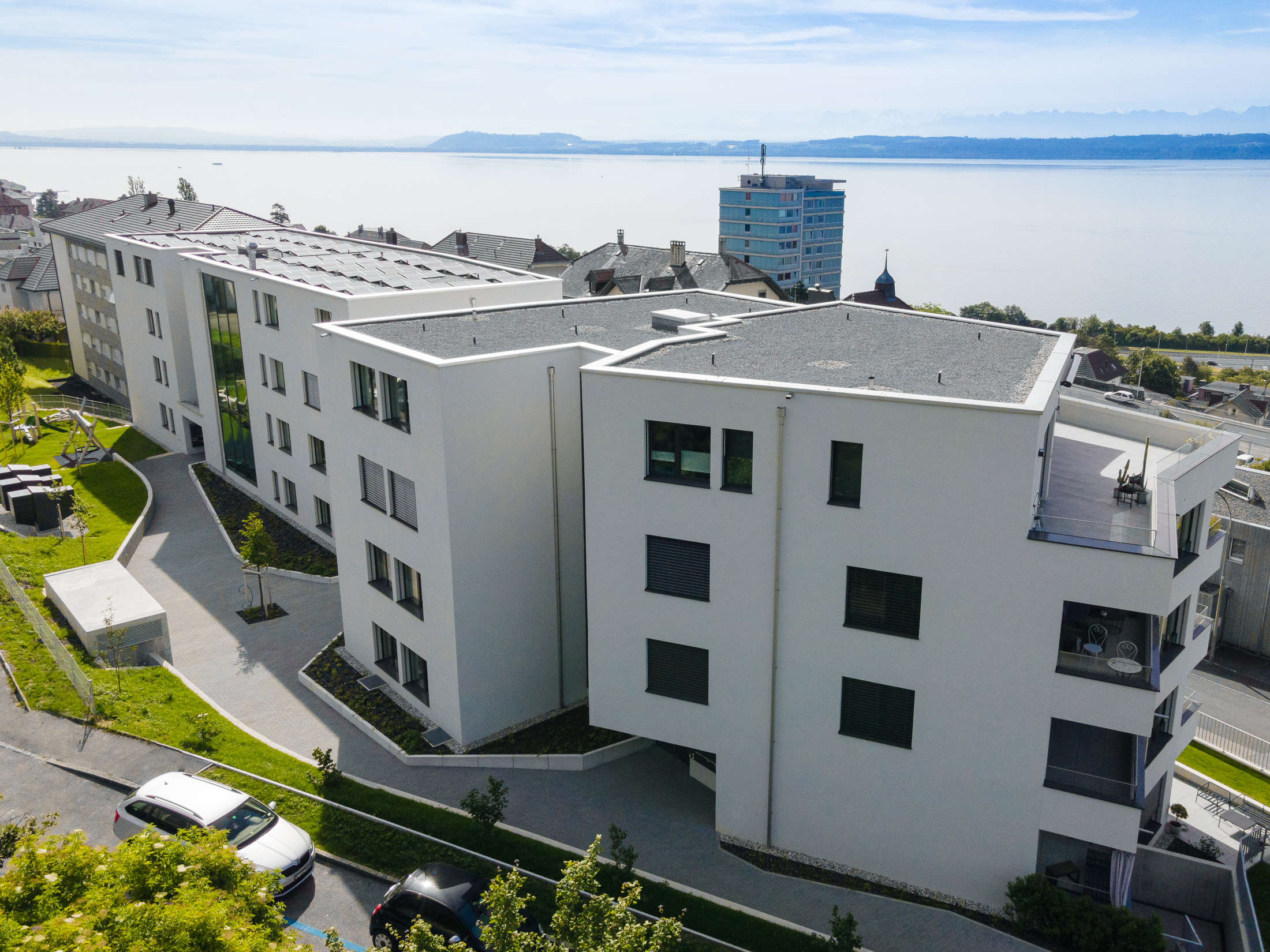 Le chauffage des bâtiments est réalisé par 3 PAC air-eau et l’ensemble du projet respecte le standard Minergie-P.