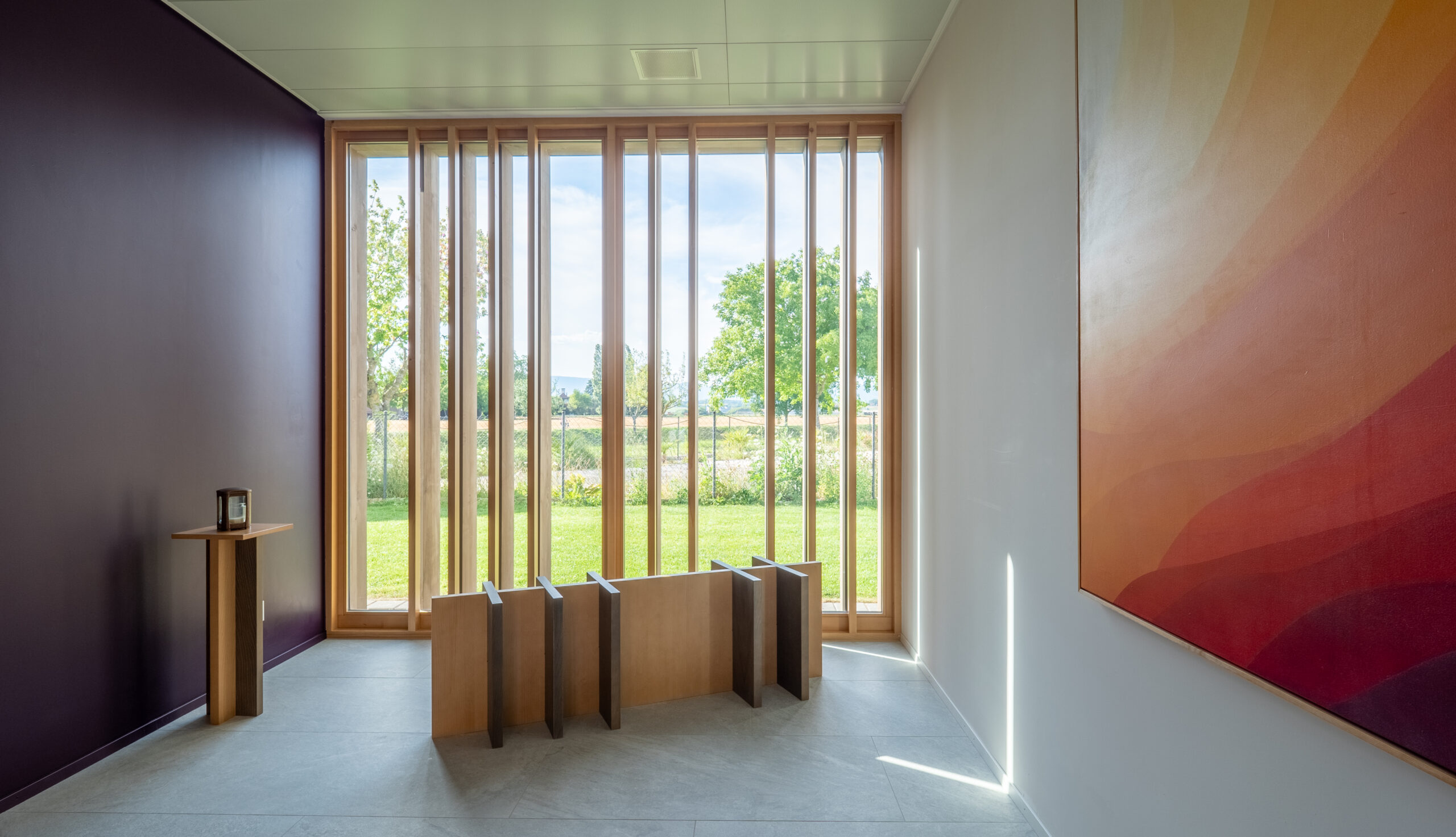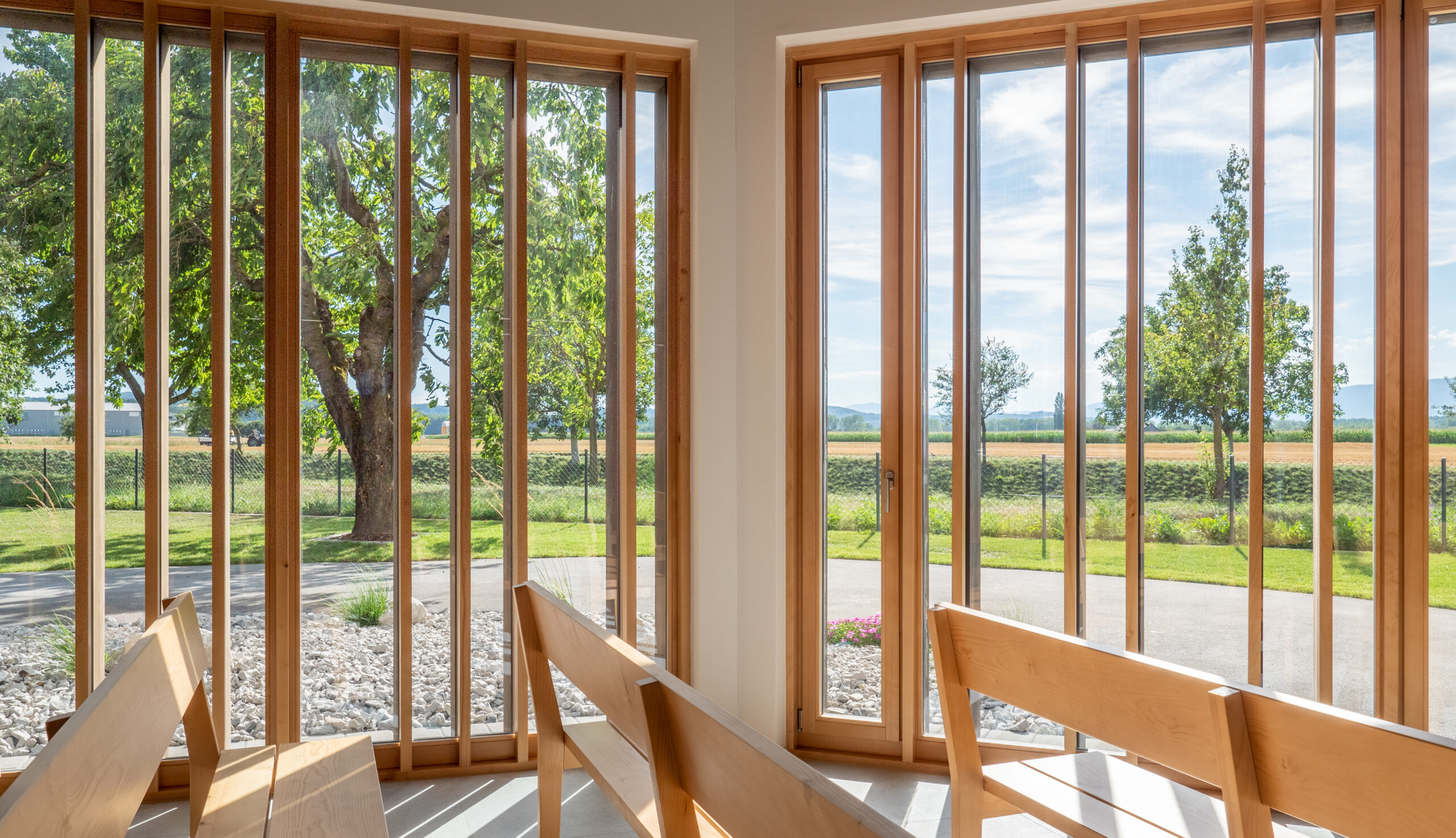Dès les premières discussions, Monsieur Rossier a insisté sur ce qui lui tenait particulièrement à cœur : accompagner dignement les personnes en deuil dans un endroit chaleureux et intime tout en étant ouvert vers la nature extérieure et le jardin.
