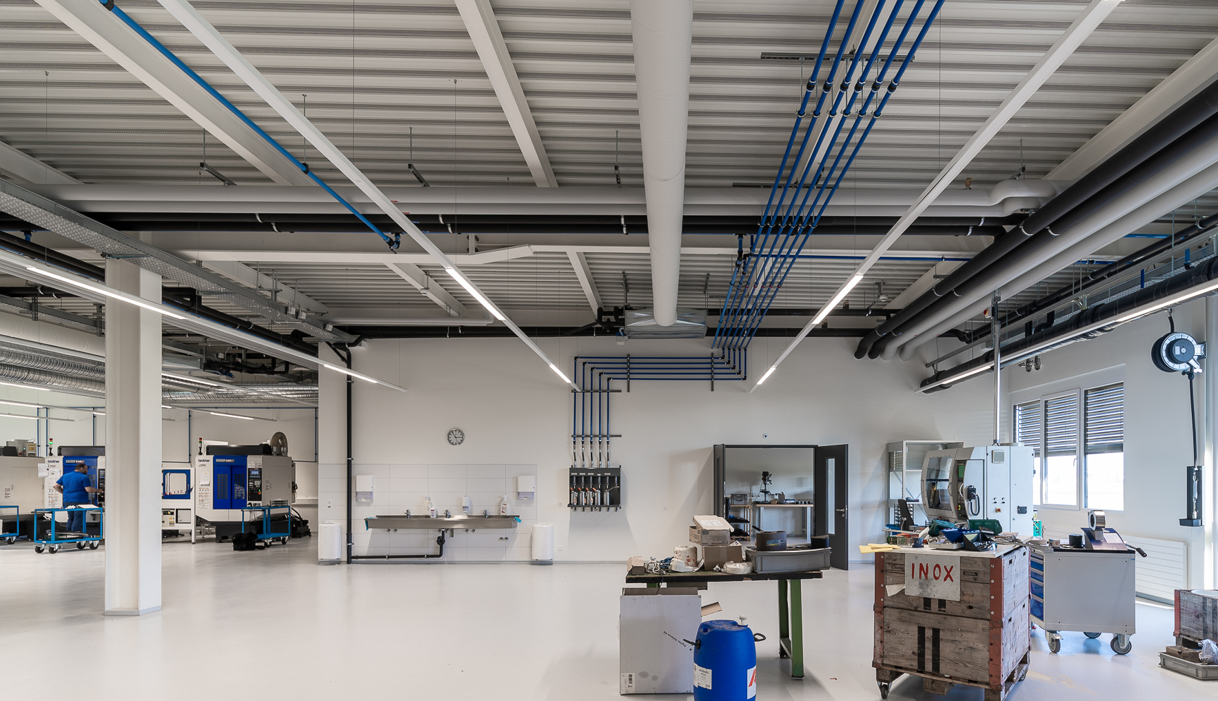 - Bâtiment de production sur deux niveaux comprenant partie administrative, traitement de surface et usinage, accompagné de différents locaux de service