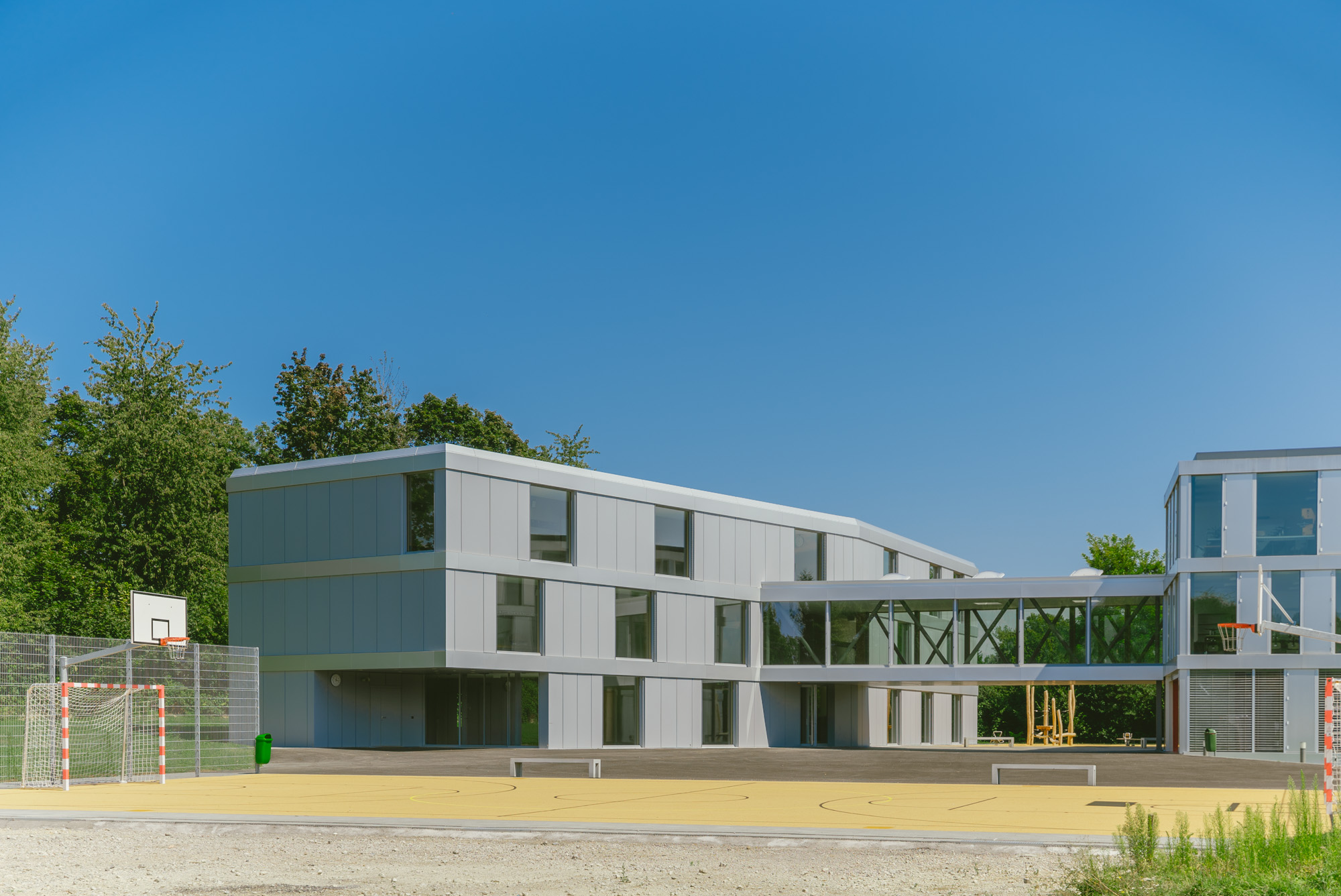 Les nouvelles salles de classe, les bureaux et les zones de dégagement offrent un cadre d’apprentissage moderne et fonctionnel. Les matériaux ont été choisis avec soin : une structure mêlant béton apparent et bois pour une atmosphère chaleureuse, des façades ventilées à l’esthétique contemporaine, ainsi que des finitions robustes adaptées à l’usage quotidien.