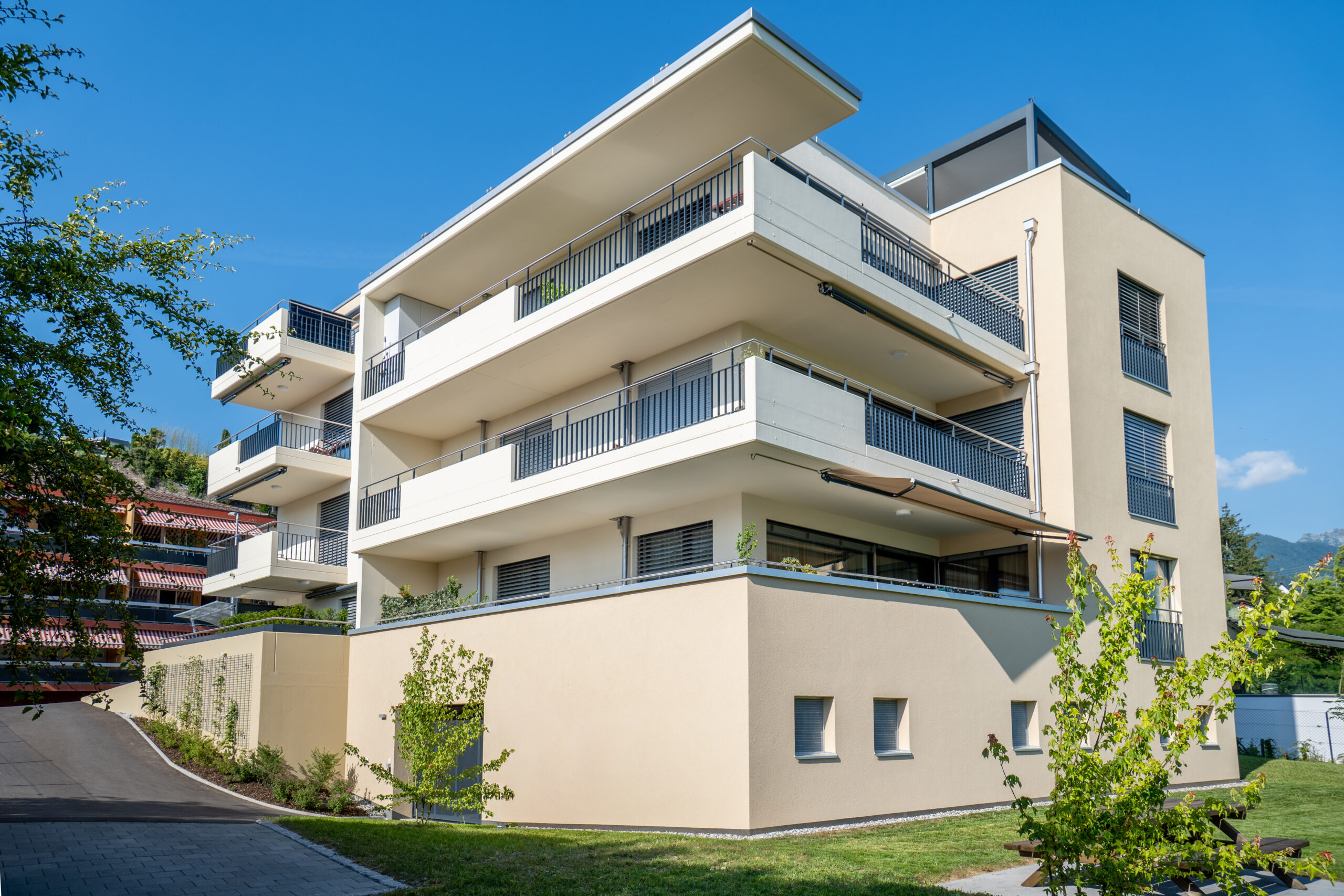 La répartition des logements a été conçue pour répondre à une diversité de besoins, avec des appartements de 2.5 à 4.5 pièces, répartis sur plusieurs niveaux, incluant un attique ainsi qu’un sous-sol accueillant parking, caves et locaux techniques.