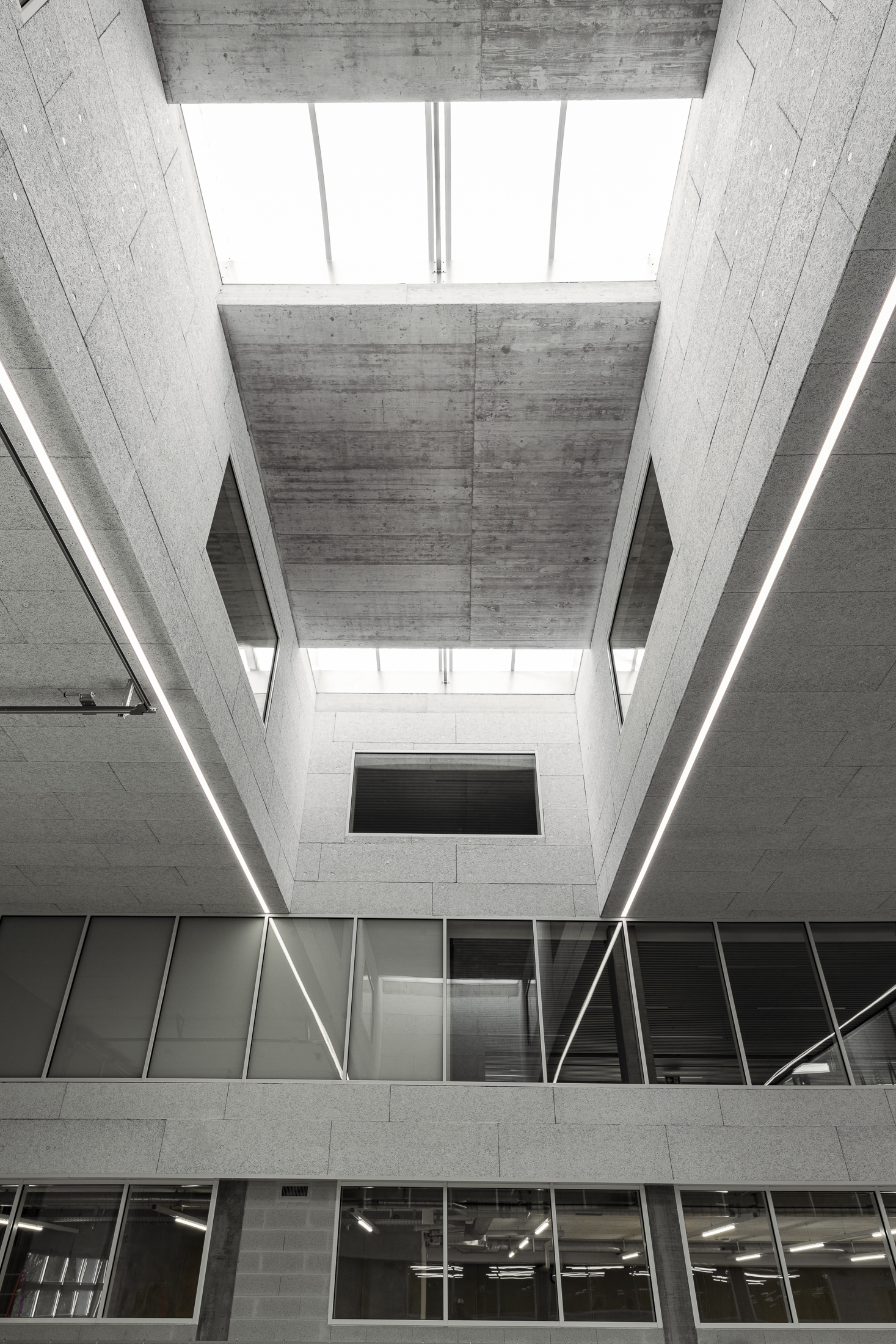 Une attention particulière a été portée aux aspects énergétiques et techniques. Le bâtiment est équipé d’une installation photovoltaïque de 303 kWp, contribuant activement à la production d’énergie renouvelable.