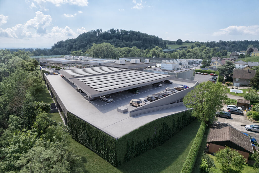 Le gros-œuvre et le béton armé sont réalisés en collaboration avec Implenia, partenaire du projet, assurant une exécution rapide et qualitative grâce notamment à la pose d’éléments préfabriqués de grande dimension.